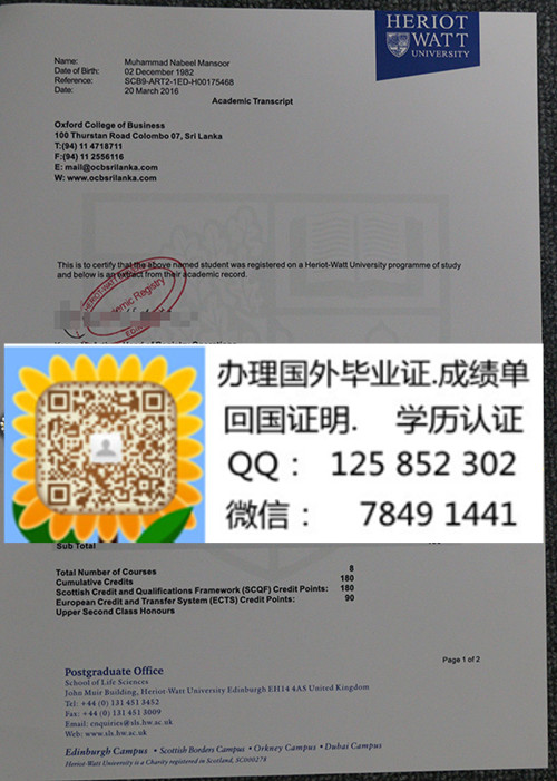 Heriot Watt University Diploma赫瑞瓦特大学成绩单样本