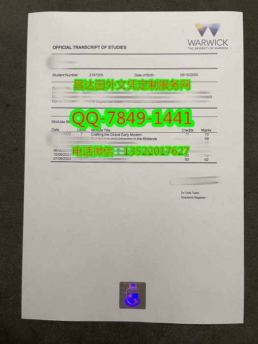 英国华威大学成绩单The University of Warwick Diploma