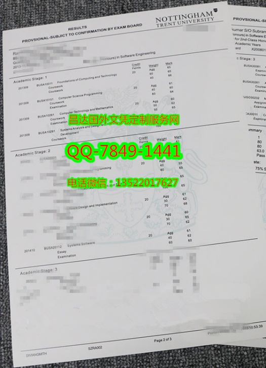 定制英国诺丁汉特伦特大学成绩单Nottingham Trent University Diploma